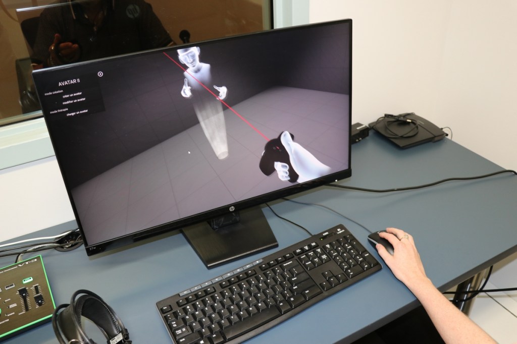 D’abord, des technologies 3D en réalité virtuelle mettent en image le persécuteur verbal selon la représentation visuelle qu’a le patient de sa voix. Ces technologies précises et avancées permettent la création d’un avatar virtuel réaliste portant les caractéristiques morphologies de la voix hallucinée. Des technologies additionnelles modifient la voix du psychiatre traitant pour ressembler à celle de l’hallucination verbale, tout en assurant la prosodie et la synchronisation labiale.